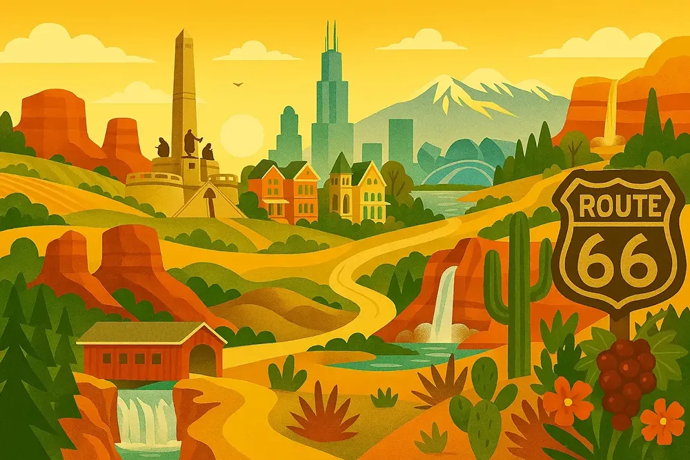 Великие равнины и небоскрёбы Чикаго, Миллениум-парк, башня Уиллис, культовый американский маршрут 66, леса, каньоны и водопады, курганы Кахокия, гробница Линкольна, Президентская библиотека, викторианская архитектура, винодельни и фермерские туры.
