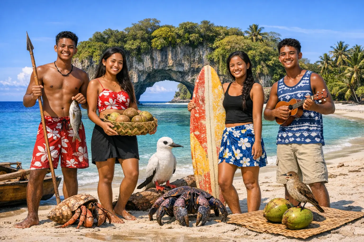 Удалённые атоллы, история Второй мировой войны на Тараве и остров Киритимати предлагают дайвинг, рыбалку и культурное погружение, кухня основана на морепродуктах, кокосе и хлебном дереве.