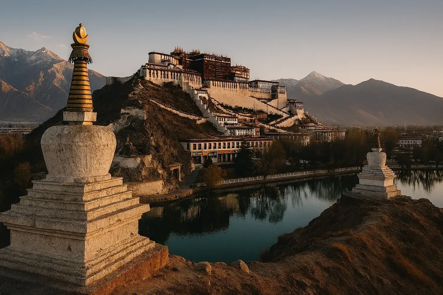 Лхаса — духовное сердце региона и центр паломничества; дворец Потала — символ страны и резиденция Далай-лам; храм Джоканг — главная святыня Лхасы; базовый лагерь Эвереста — культовое место у подножия высочайшей горы мира.