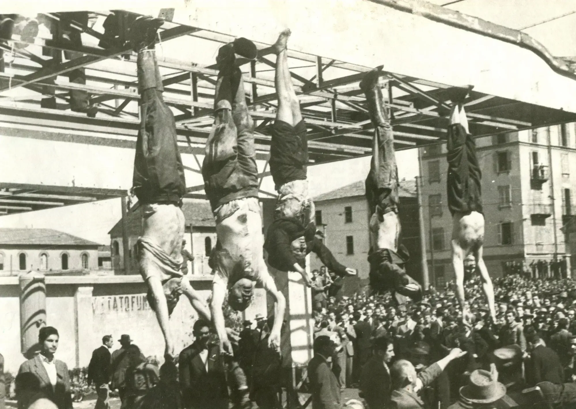 Место повешения Бенито Муссолини после расстрела партизанами.