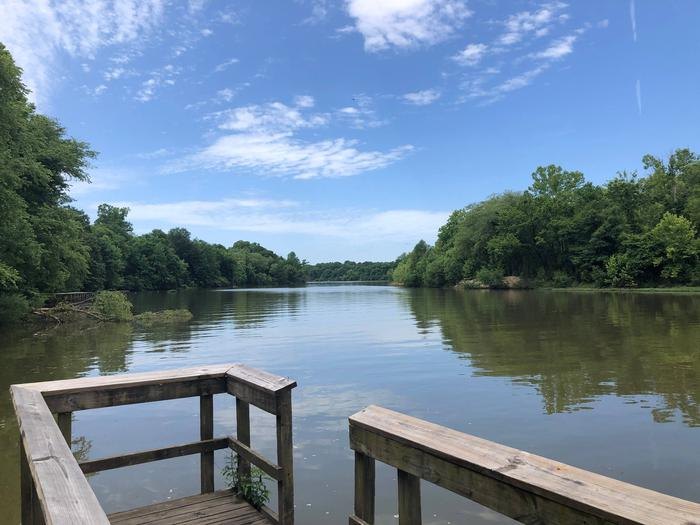 A popular Mississippi lake for fishing and outdoor recreation, surrounded by peaceful forest landscapes.
