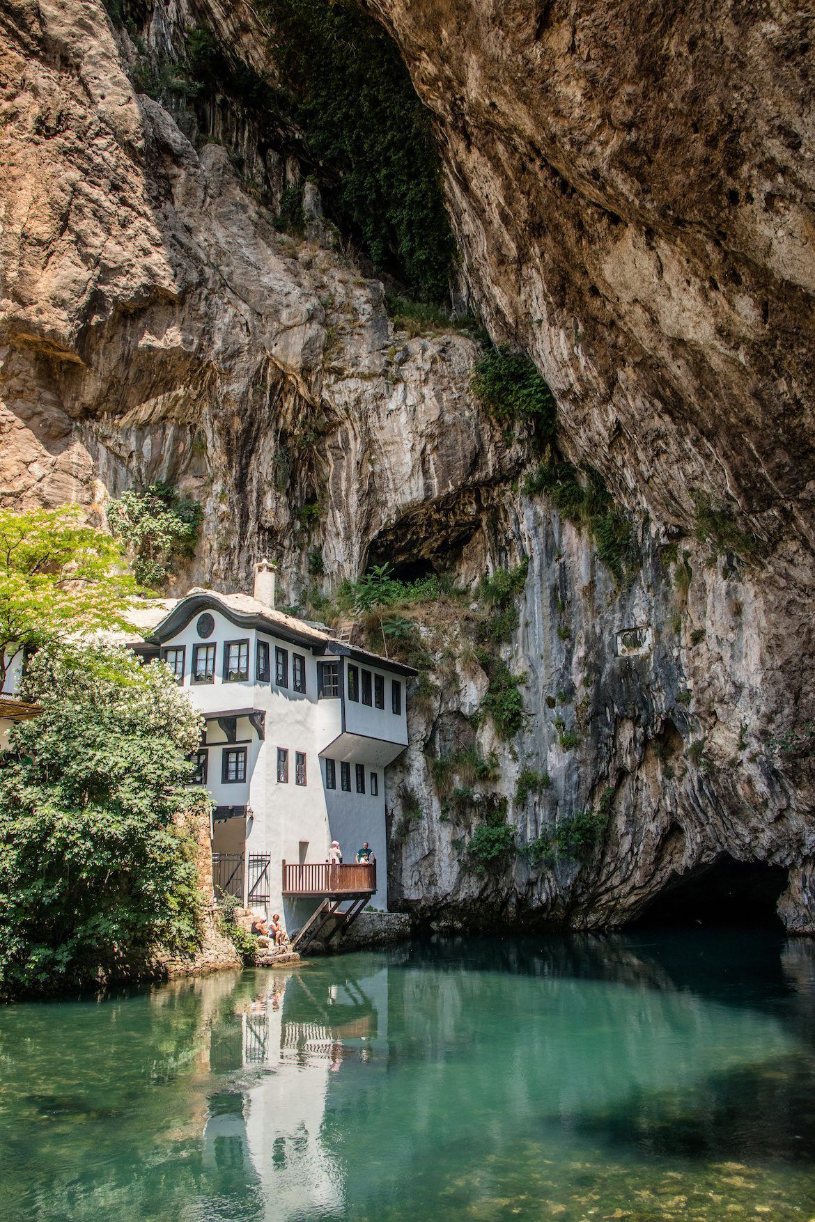 Blagaj Tekija (also known as Blagaj Tekke) dates back nearly six centuries, and was built right on the banks of the green Buna river which makes for a stunning contrast against the building’s whitewashed walls. It is believed that the tekia in Blagaj was founded immediately after the establishment of Ottoman power in Herzegovina, that is, around 1520. It is mentioned in the travel notes of the travel writer Evliya Celebiya, who visited Blagai in 1664. Celebiya writes that the dervishes in the tekiya have friendly and scientific discussions. There are two tombs in the tekia.