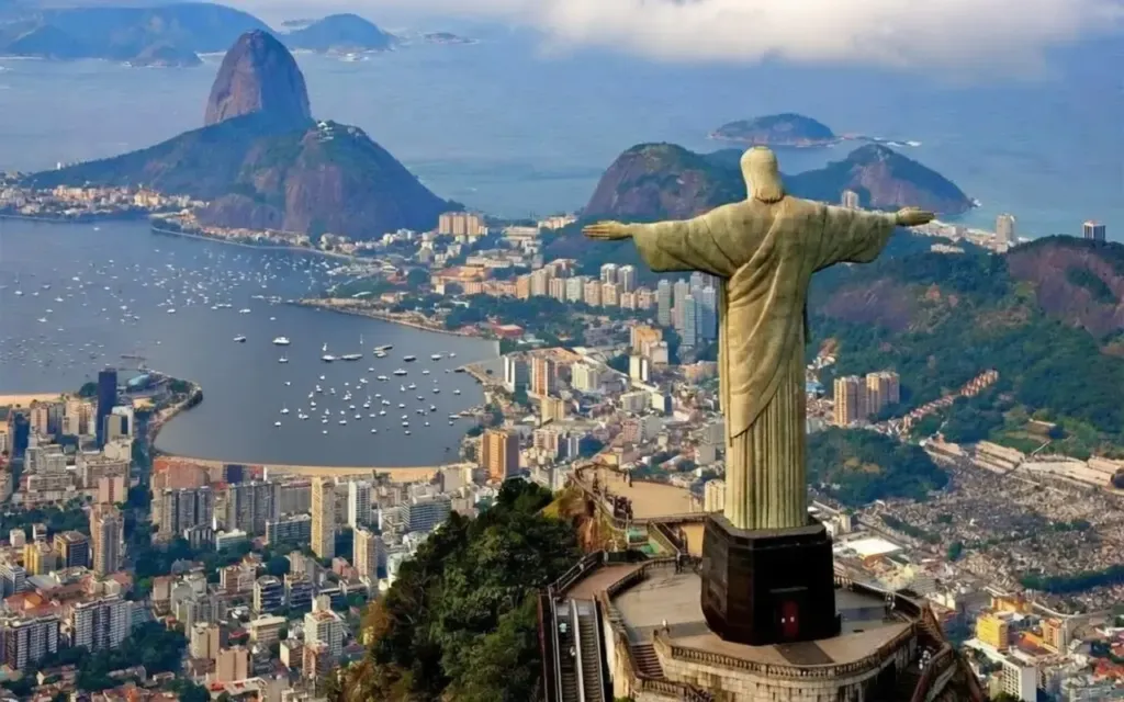 A mid-point stop on the railway leads to trails through the Tijuca National Park, a huge forest that protects springs, waterfalls, and a wide variety of tropical birds, butterflies, and plants. Several more viewpoints open out within the park.