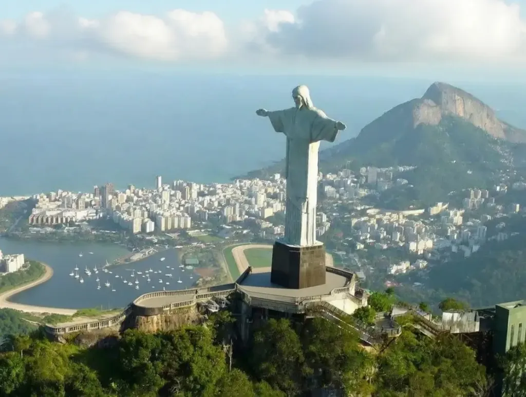 The eight-meter base encloses a chapel that is popular for weddings. Although this is one of Brazil’s most readily recognized icons, it is often mistakenly called The Christ of the Andes, confused with the older statue marking the boundary between Argentina and Chile.