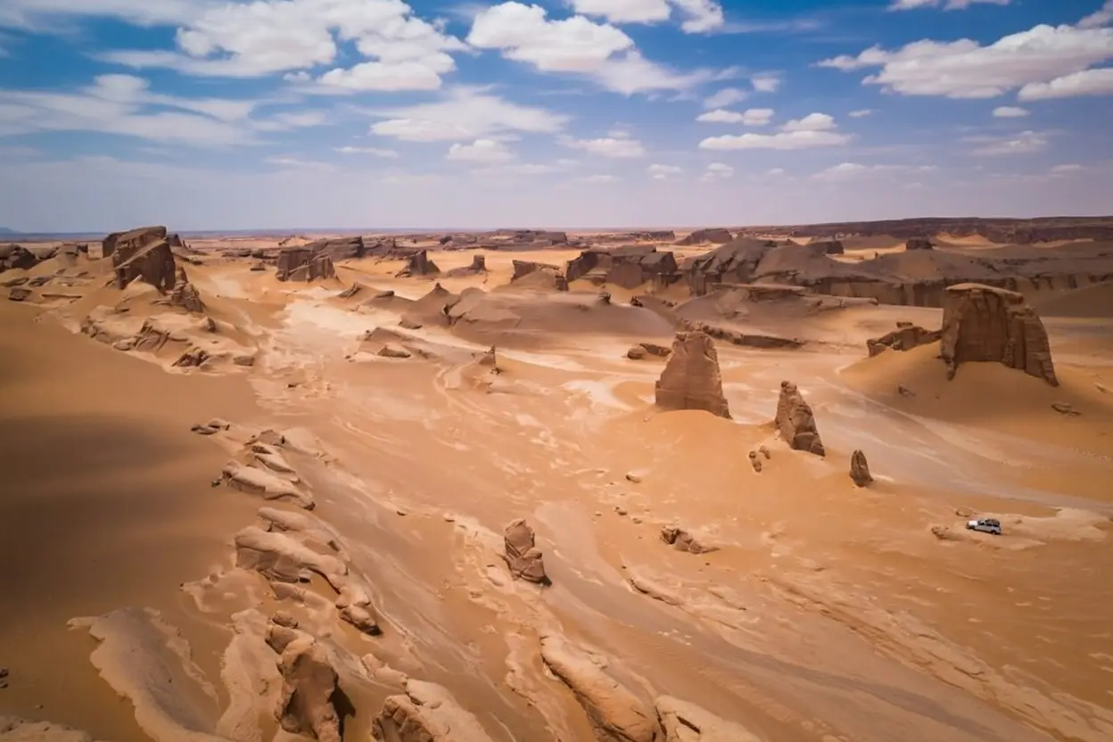 The highest temperature on the planet is +70.7 C, taking away the record from the North American Death Valley. For millions of years, the hot wind has bitten into the rock, creating bizarre alien landscapes. In the Lut desert there are dunes familiar to everyone, but saline formations are much more interesting. Sharp rocks, a valley with kilometers of frozen waves, sharp as blades on the crests. There is a mysterious salty river, with water as white as milk and viscous as jelly. There are areas with black as gunpowder sand, there are areas with red, as from the Martian plains.