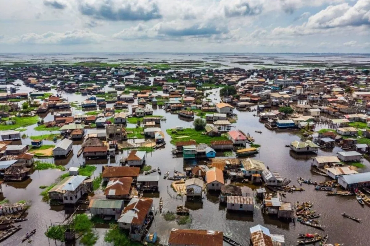 Stilt village on Lake Nokoué, unique water settlement.