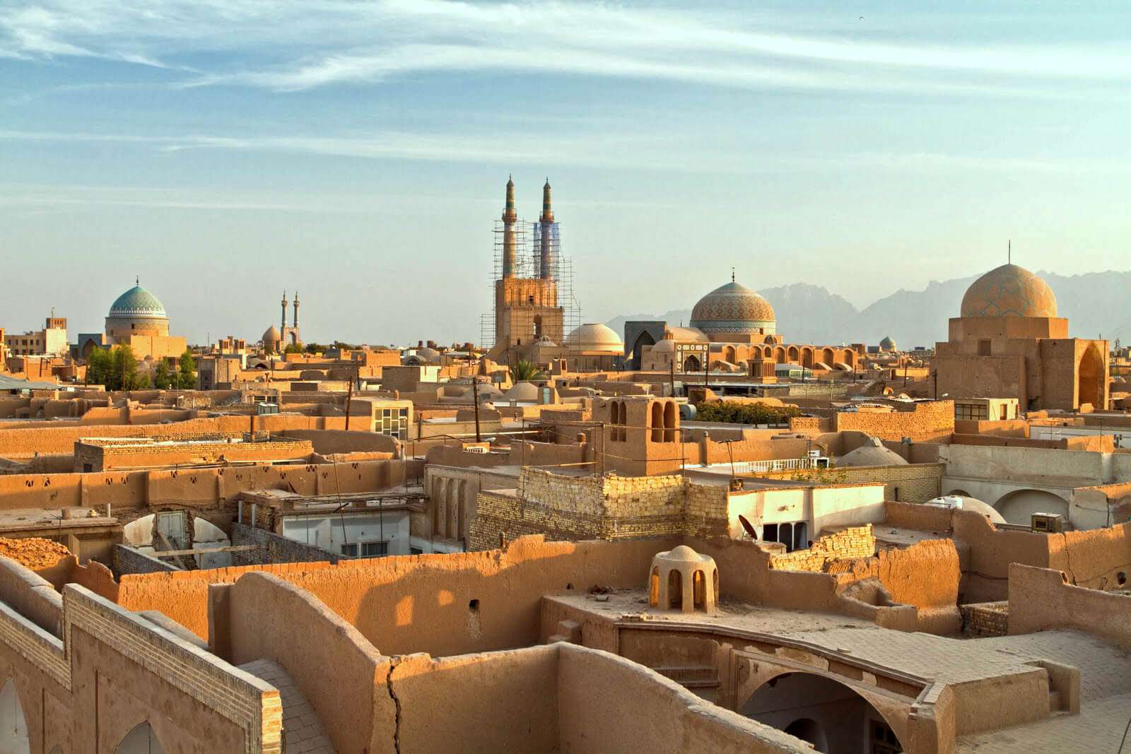 The City of Yazd is located in the middle of the Iranian plateau, 270 km southeast of Isfahan, close to the Spice and Silk Roads. It bears living testimony to the use of limited resources for survival in the desert. Water is supplied to the city through a qanat system developed to draw underground water. The earthen architecture of Yazd has escaped the modernization that destroyed many traditional earthen towns, retaining its traditional districts, the qanat system, traditional houses, bazars, hammams, mosques, synagogues, Zoroastrian temples and the historic garden of Dolat-abad.