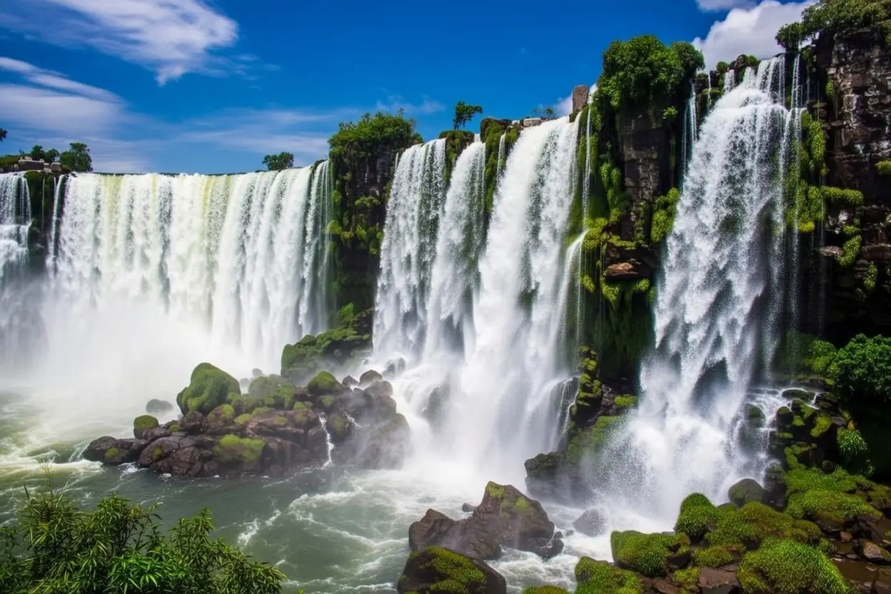 The semicircular waterfall at the heart of this site is some 80 m high and 2,700 m in diameter and is situated on a basaltic line spanning the border between Argentina and Brazil. Made up of many cascades producing vast sprays of water, it is one of the most spectacular waterfalls in the world. The surrounding subtropical rainforest has over 2,000 species of vascular plants and is home to the typical wildlife of the region: tapirs, giant anteaters, howler monkeys, ocelots, jaguars and caymans.