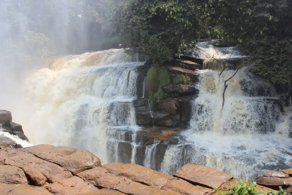 Picturesque waterfall surrounded by tropical nature, popular excursion site.