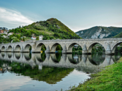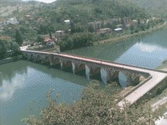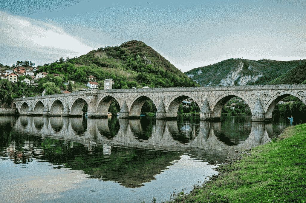 The Mehmed Pasa Sokolovic Bridge of Visegrad across the Drina River in the east of Bosnia and Herzegovina was built at the end of the 16th century by the court architect Mimar Koca Sinan on the orders of Grand Vizier Mehmed Pasa Sokolovic. Characteristic of the apogee of Ottoman monumental architecture and civil engineering, the bridge has 11 masonry arches with spans of 11 m to 15 m, and an access ramp at right angles with four arches on the left bank of the river. The 179.5 m long bridge is a representative masterpiece of Sinan, one of the greatest architects and engineers of the classical Ottoman period and a contemporary of the Italian Renaissance, with which his work may be compared. The unique elegance of proportion and monumental nobility of the whole site bear witness to the greatness of this style of architecture.