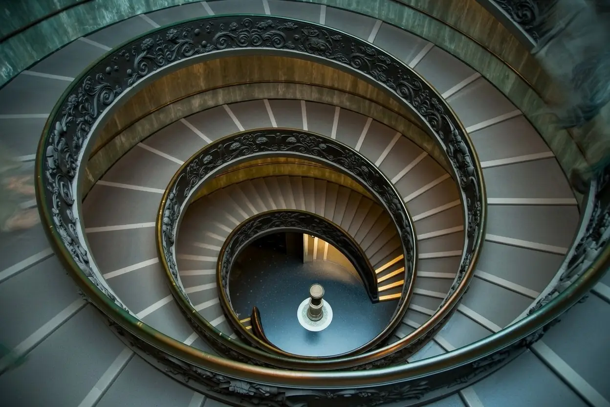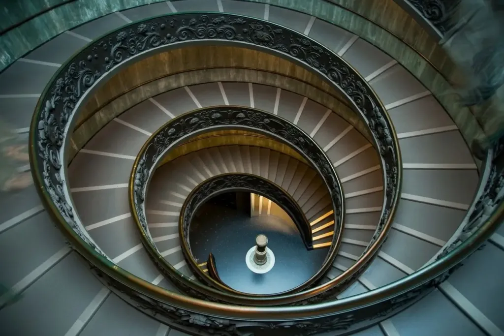 The Simonetti Staircase (also called Snail Staircase or Momo staircase) is the Vatican’s well-known and most photographed set of stairs. Formed by two separate wrought iron stairs – one going down and the other going up, they twist together to form a double helix. This is designed to allow people descending to not meet the ones ascending. This ensures uninterrupted traffic in the Vatican museum.