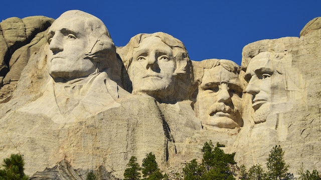 Visitors can’t help but be impressed by the sheer scale and massive physical effort of the team behind Mount Rushmore National Memorial in South Dakota. Looking like they’re either emerging from or being absorbed by the mountain, the stony faces of past presidents George Washington, Thomas Jefferson, Abraham Lincoln and Theodore Roosevelt – carved 60ft tall in the granite of a Black Hills outcrop – are one of the most famous images in the US.