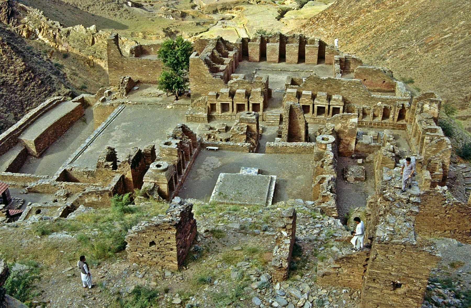The Buddhist monastic complex of Takht-i-Bahi (Throne of Origins) was founded in the early 1st century. Owing to its location on the crest of a high hill, it escaped successive invasions and is still exceptionally well preserved. Nearby are the ruins of Sahr-i-Bahlol, a small fortified city dating from the same period.