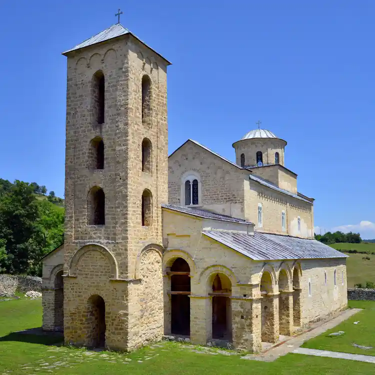 On the outskirts of Stari Ras, the first capital of Serbia, there is an impressive group of medieval monuments consisting of fortresses, churches and monasteries. The monastery at Sopocani is a reminder of the contacts between Western civilization and the Byzantine world.