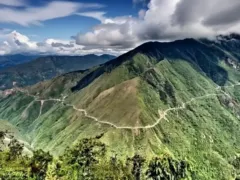 The Yungas (Aymara yunka warm or temperate Andes or earth, Quechua yunka warm area on the slopes of the Andes) is a bioregion of a narrow band of forest along the eastern slope of the Andes Mountains from Peru and Bolivia, and extends into Northwest Argentina at the slope of the Andes pre-cordillera. It is a transitional zone between the Andean highlands and the eastern forests. Like the surrounding areas, the Yungas belong to the Neotropical realm; the climate is rainy, humid, and warm.