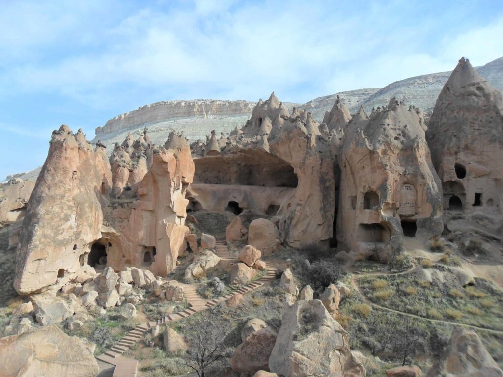 Zelve Archaeological Site Zelve was founded on the steep and northern slopes of Aktepe. Zelve Archaeological Site, which consists of three valleys, is the location where fairy chimneys are most abundant. It is not known when the troglodytic life started in carved rock places such as Uçhisar, Göreme and Çavuşin but Zelve became one of the important settlements and religious centres of Christians especially in the 9th and 13th centuries, and the first religious seminars were given to the priests in this region. In the 1st valley of Zelve, there are mill (seten) used for making bulgur, Balıklı and Üzümlü Church, and winery in the east. In the 2nd valley there is the Church of the Holy Cross. In the third valley, there is a village square and a mosque. The most important feature of the 3rd valley is the monastery complex carved into a dome-like rock mass. Pigeonhouse decorations carved on high slopes in this valley add a unique value to the archaeological site. At the exit point of the valley is the Direkli Church.