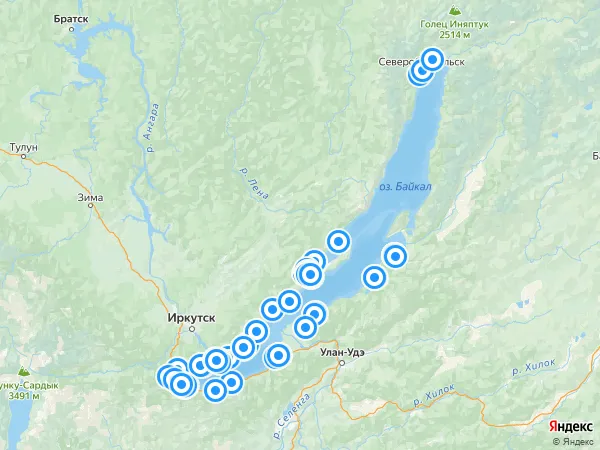 — Байкальск — размещение на курорте «Соболь» или гостиница «Галактика» (рядом с горой Соболиная)