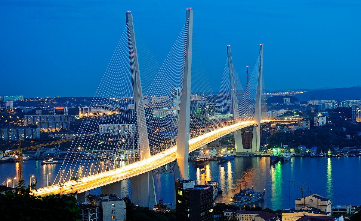Вантовый мост через бухту Золотой Рог, символ Владивостока.