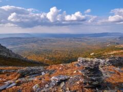 Высшая точка Кировской области (1297 м), популярный объект для альпинистов и туристов.