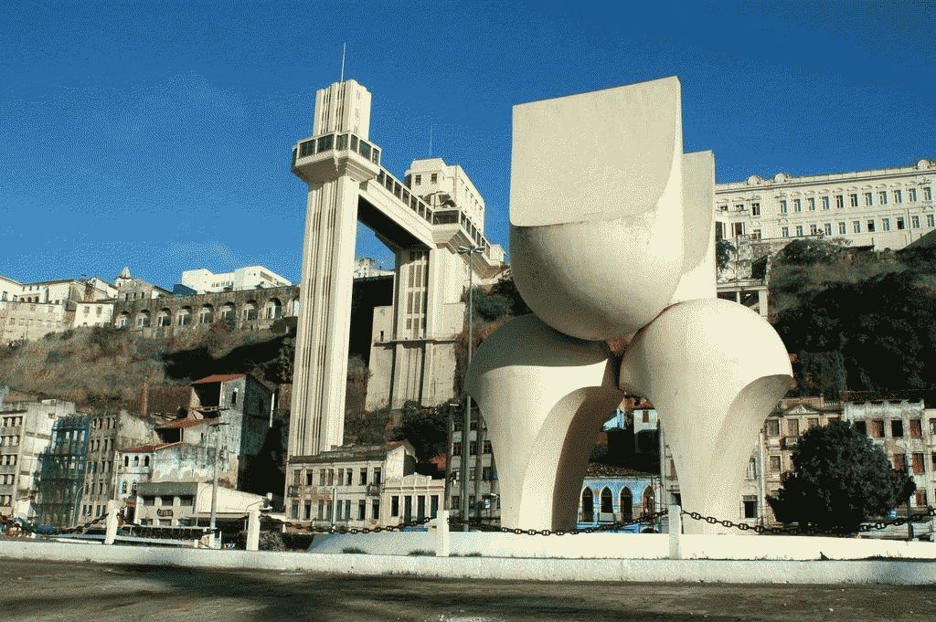 Fonte da Rampa do Mercado is a monumental fountain in Cayru Square designed by sculptor Mário Cravo, Jr. Known locally as A Bunda (“The Butt”), it is made of yellow fiberglass with an internal metallic structure. This unique 16 meter tall fountain was inaugurated in 1970. Erected in honor of the burned down “old” Mercado market. Author — Mario Cavu Jr.