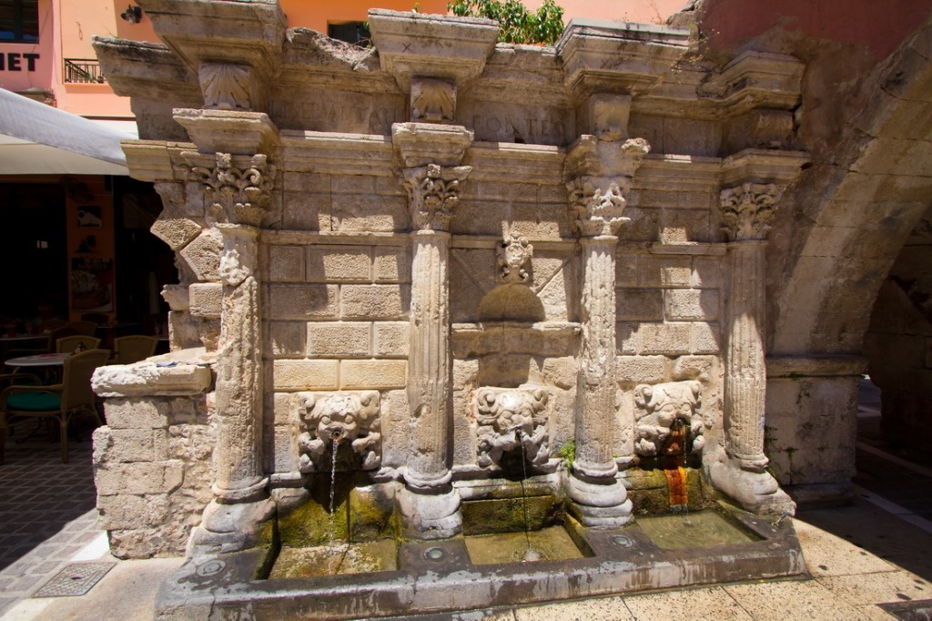 The fountain consists of three mouths in the form of lion heads, from which water flows, above which rise four Corinthian columns. During the Ottoman Empire, the spring was surrounded by a wall and covered with an arched dome. To this day, the walls and the dome have not survived.
