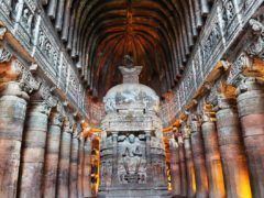 The first Buddhist cave monuments at Ajanta date from the 2nd and 1st centuries B.C. During the Gupta period (5th and 6th centuries A.D.), many more richly decorated caves were added to the original group. The paintings and sculptures of Ajanta, considered masterpieces of Buddhist religious art, have had a considerable artistic influence.