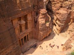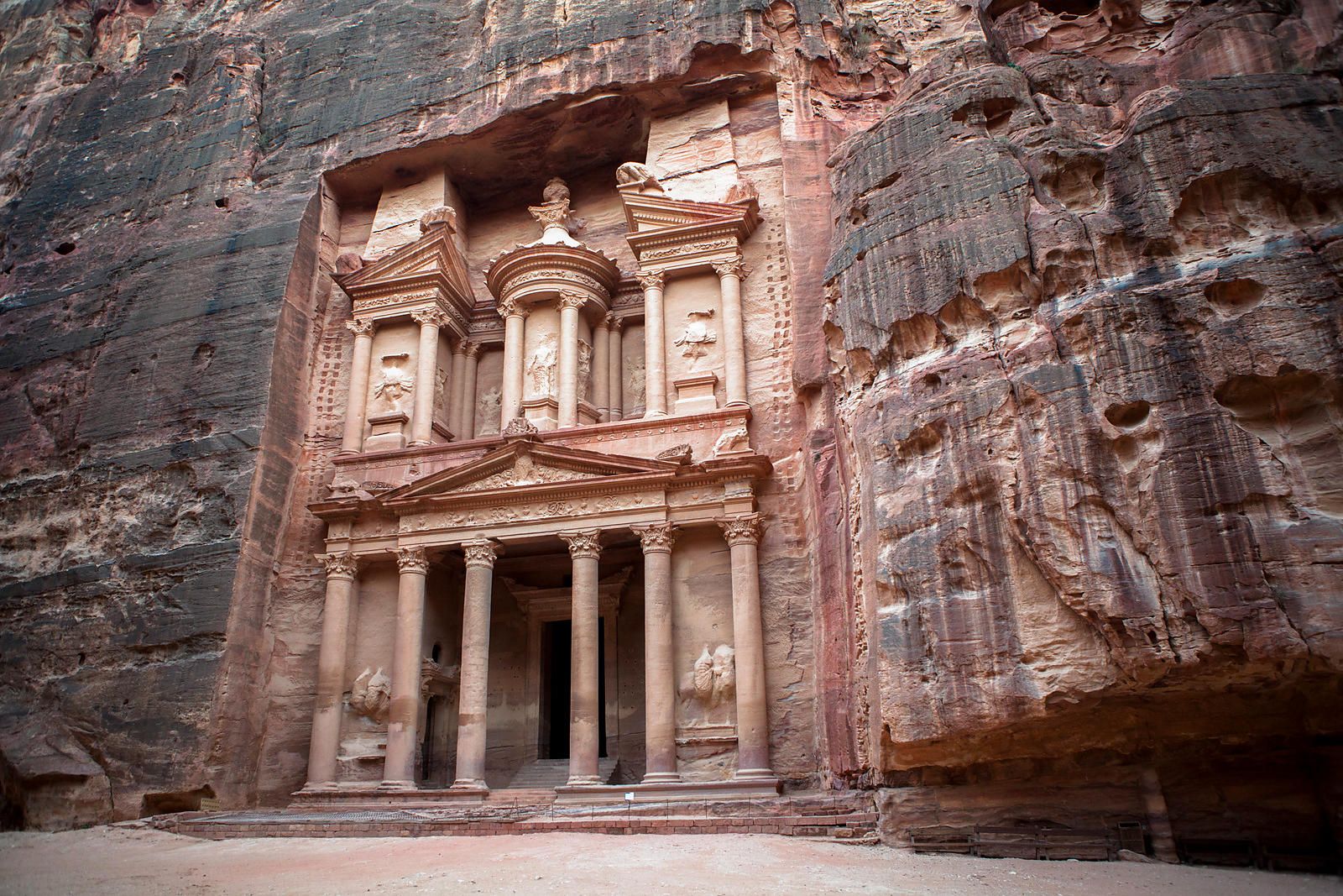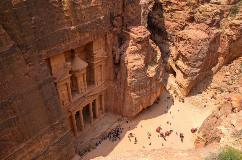 As with most of the other buildings in this ancient town, including the Monastery (Arabic: Ad Deir), this structure was carved out of a sandstone rock face. The structure is believed to have been the mausoleum of the Nabatean King Aretas IV in the 1st century AD. It is one of the most popular tourist attractions in both Jordan and the region. It became known as “Al-Khazneh”, or The Treasury, in the early 19th century by the area’s Bedouins as they had believed it contained treasures.