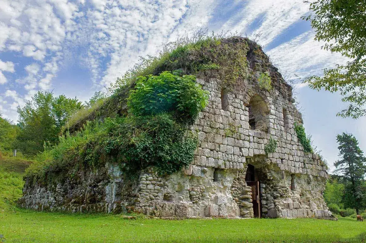 Раннесредневековый христианский храм VIII–IX веков в Гудаутском районе Абхазии, уникальный образец базилики с изолированными нефами. Сегодня сохранился в виде живописных руин, увитых растительностью.