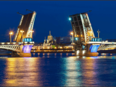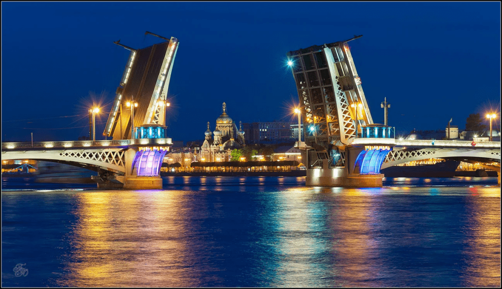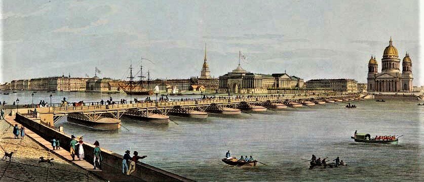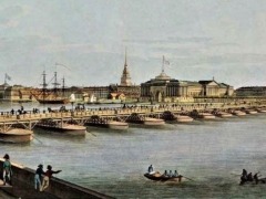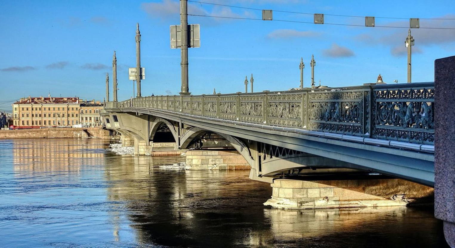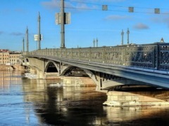 This is the first permanent bridge across the Neva in the city. The oldest. the first permanent drawbridge on the Neva in St. Petersburg. The bridge is the river-sea border. Above it the Bolshaya Neva flows, below the bridge the waterway begins.