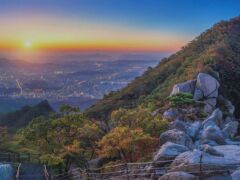 Situated on the northern outskirts of the capital of South Korea, Seoul. Being the highest point of the city and its surroundings with an elevation of 836.5 meters above sea level, the peak is visible from many areas of the South Korean metropolis. During the Joseon Dynasty (1392–1897), Bukhansan Mountain served as the northern border of the city.