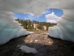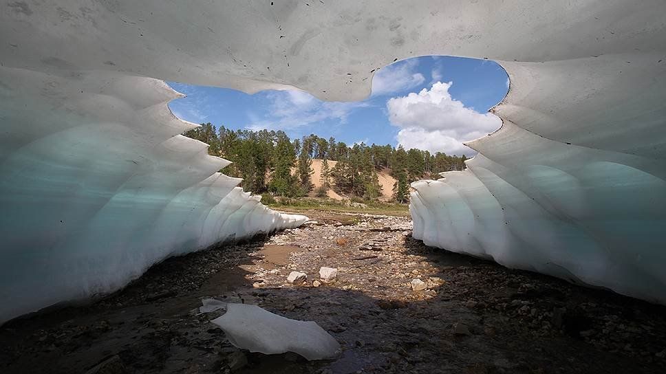 Ледяное образование с прозрачными стенками и подземными ходами.