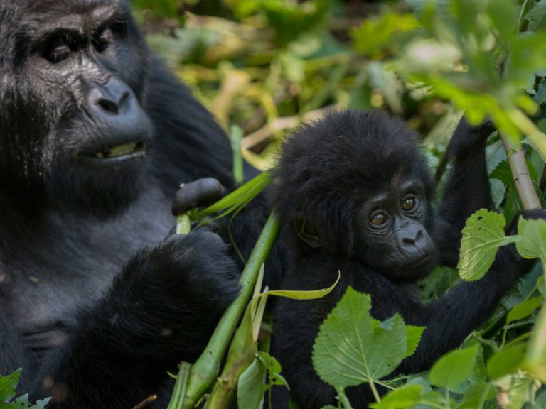 Bwindi, the birthplace of mountain gorilla trekking, is a jungle paradise covered in dense misty Afromontane forest that clings to steep mountain slopes and cloaks secret valleys. This biologically diverse forest enthralls trekkers with its massive trees and dense understory of ferns and vines – hence the name ‘Impenetrable’.