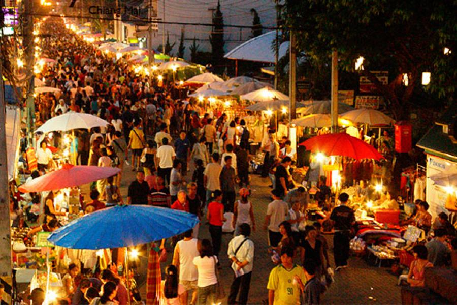 Every Thailand visitor looks forward to cheap and delicious food-and that’s exactly what they can find in abundance at Chiang Mai’s Sunday Night Walking Street. Vendors sell all kinds of treats here: from the popular pad Thai and chicken satay to samosas, fried bananas, sweet roti, and fresh fruit shakes-often for less than $2 a piece.