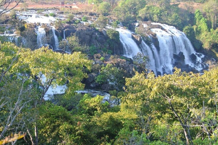 Situated in Lunda Sol, the Dala Waterfalls are about 60m high and conjure a spectacular scene with the mist and spray created from the crashing of the water on the rocks below. The waterfalls can be comfortably viewed from a bridge near the base of the falls or, for those who truly love the scene, a hotel is built only 50m away from the waterfalls. The waterfalls, also referred to as the Chiumbe River falls, should not be confused with the Cassengo falls which are smaller but situated in the same area of Angola.