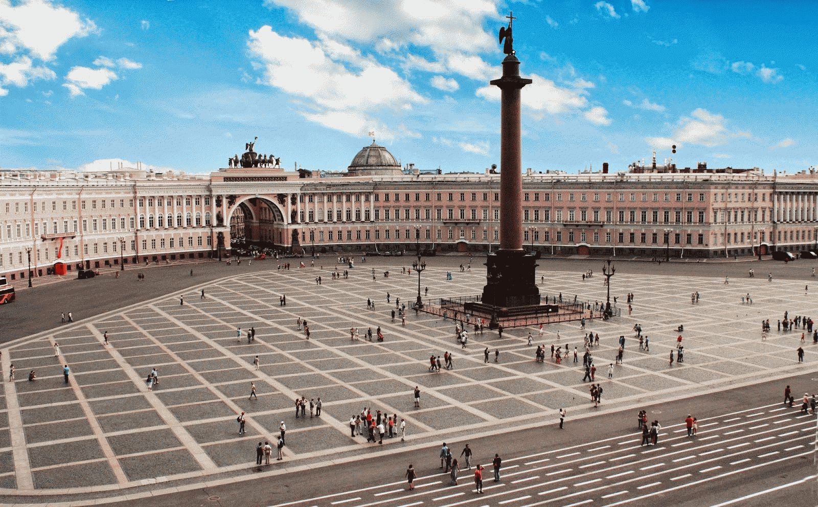 The main square of St. Petersburg. The ensemble of the Square includes: the Winter Palace (Hermitage), the semicircle of the General Staff building with the Triumphal Arch, the Alexander Column.