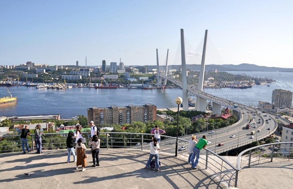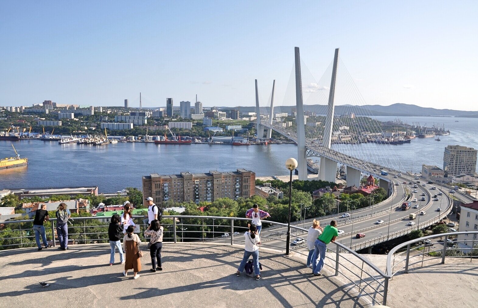 From here you have the best view of the Golden Horn Bay, Russky Island, those same cable-stayed bridges and the historical areas of the city. The ships standing in the bay and the small green islands in the Sea of Japan make the view especially poetic.