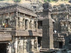 These 34 monasteries and temples, extending over more than 2 km, were dug side by side in the wall of a high basalt cliff, not far from Aurangabad, in Maharashtra. Ellora, with its uninterrupted sequence of monuments dating from A.D. 600 to 1000, brings the civilization of ancient India to life. Not only is the Ellora complex a unique artistic creation and a technological exploit but, with its sanctuaries devoted to Buddhism, Hinduism and Jainism, it illustrates the spirit of tolerance that was characteristic of ancient India.