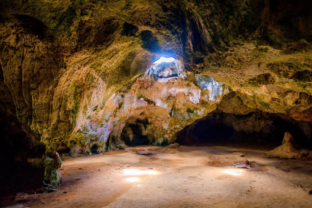 Enter a world filled with amazing stalactites, stalagmites, ancient Indian rock drawings and bats inside Aruba’s caves. In the deep recesses of rock along the island’s windward coast, shallow cave formations intrigue visitors, who, in seeking to penetrate its damp chambers, are rewarded with mysterious views. The caves are accessible to the public during the day between opening hours of the national park (8:00 — 4:00 pm). Ask park rangers at the entrance of the caves for a tour inside, as they can share interesting information on rock drawings, and nature’s artwork of stalagmites and stalactites. The Quadirikiri Cave is famous for its two chambers, illuminated by the sunlight streaming through holes in the roof of the cave. The cave extends for about 100 feet. In the darker portions of the cave nest hundreds of harmless bats. The Fontein Cave is the most popular of the caves as it is the only one that has the drawings of Arawak Indians on the ceilings, providing a real sense of island history to this cave. All three of these caves are located within the Arikok National Park Aruba.