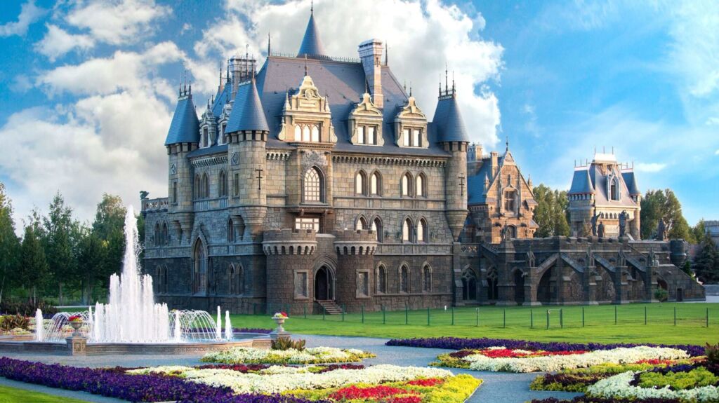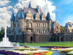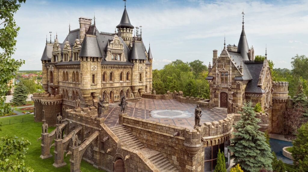 Неоготический замок, построенный в XXI веке, туристическая достопримечательность.