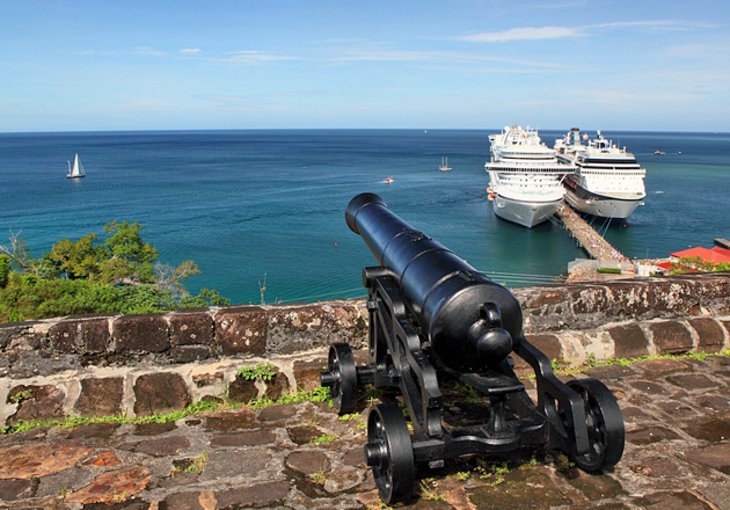 Built in 1705 by the French, Fort George lies on the promontory to the west of the harbor and is Grenada’s oldest fort. It was built to protect the harbor, but stands mostly derelict today. The main draw here is the spectacular 360-degree view across the town’s red-tiled roofs and church spires to the harbor and sea beyond. You’ll also spot a few of the original cannons, which are still fired on special occasions. The police headquarters currently sit on a section of the property.