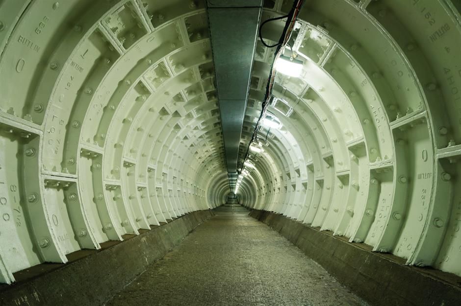 Built in 1902 to allow south London’s dockworkers easier access to the docks, the cast iron Greenwich Foot Tunnel tunnel runs under the Thames from Cutty Sark in Greenwich to the Isle of Dogs on the north side. It’s 1,214 feet (370m) in length and around 50 feet (15m) deep with spiral staircase at either end. Lifts were later added in 1904. Entrance is through two grand large glazed domes at either end, which along with the tunnel are listed structures. Along with the Woolwich Foot Tunnel, which opened in 1912, the passages were restored recently and are now used by 1.5 million people a year.