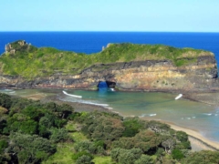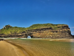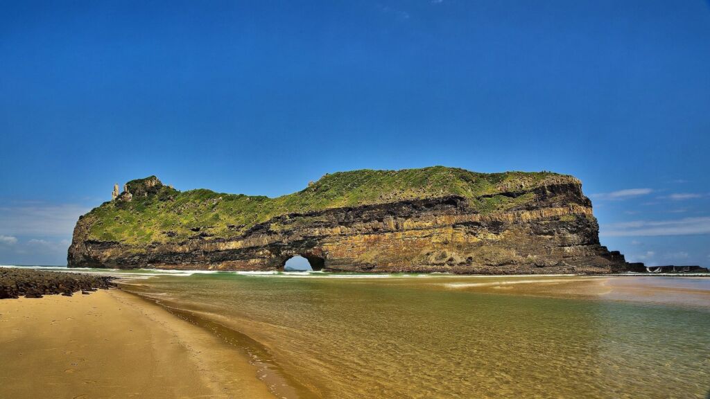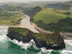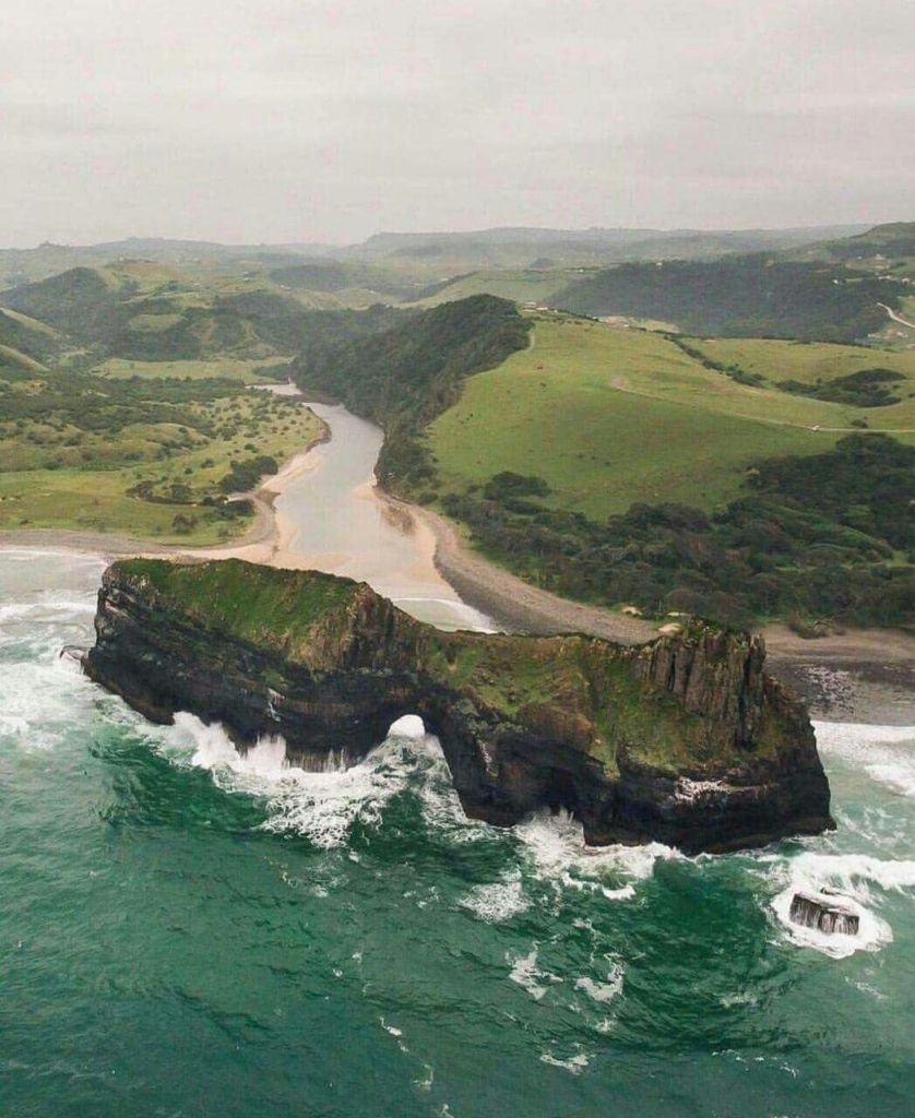 Hole-in-the-Wall is an impressive natural rocky archway located roughly at the center of the 300km stretch of wild coast between Port Edward in the North and East London in the south Wild Coast Region, Eastern Cape in South Africa. It is named Hole in the wall because the almost circular structure resembles a hole pierced through the wall of volcanic dolerite and shale. The sandstone and shale making up the cliff date back to 260 million years ago. According to Geologists, the arch was formed due to erosion from the massive waves and tides of the Indian ocean during storms.