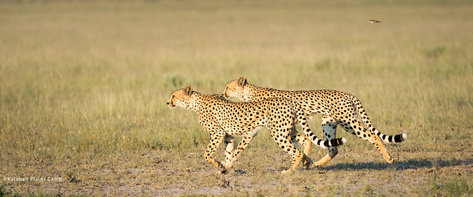 From a wildlife perspective, this area hosts the famous black-maned Kalahari lions and has strong but nomadic populations of dryland specialists like cheetah, brown hyena, gemsbok, springbok and eland as well as leopard, wild dog, spotted hyena, giraffe, kudu, wildebeest, ostrich and hartebeest, and smaller species like pangolin, ground squirrel, African wildcat, honey badger, Cape and bat-eared fox. The area does not have enough water to sustain elephants or buffalos.