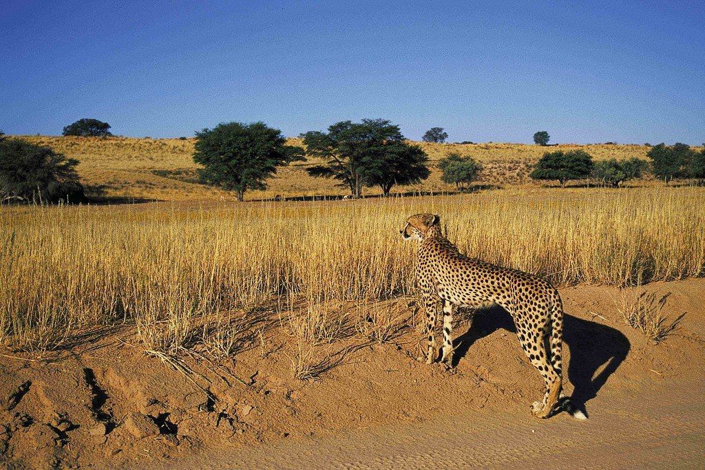 Where the red dunes and scrub fade into infinity and herds of gemsbok, springbok, eland and blue wildebeest follow the seasons, where imposing camel thorn trees provide shade for huge black-mane lions and vantage points for leopard and many raptors… this is the Kgalagadi Transfrontier Park.