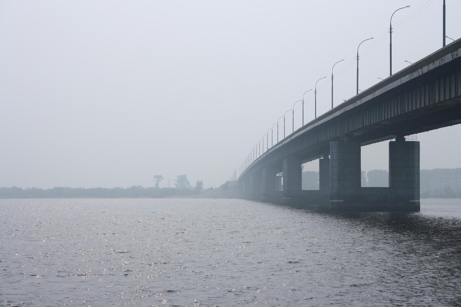 The bridge crossing passes through the left channel of the Northern Dvina, Krasnoflotsky Island and then the right channel of the Northern Dvina. The bridge has 4 lanes and sidewalks on each side. The part of the bridge located closer to the left bank of the Northern Dvina has a drawable structure and is opened at night. The total length of the bridge crossing with approaches is 5514 meters.