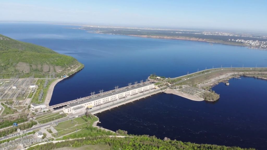 Огромное водохранилище на Волге, часть Волжской ГЭС.