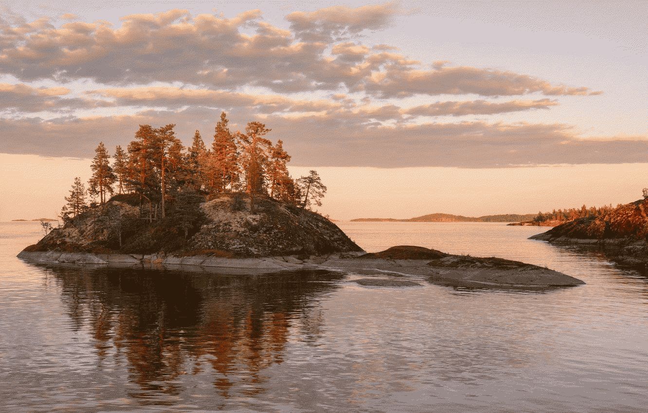 The Ladoga Skerries National Park is located on the territories of the Lakhdenpokhsky, Sortavala and Pitkyaranta regions of the Republic of Karelia. The territory of the park includes the coastal strip of Lake Ladoga with numerous bays, straits and islands, among which there are 302 large ones (with an area from 100 m² to 15 km²) — the skerry part of the coast and the adjacent water area.