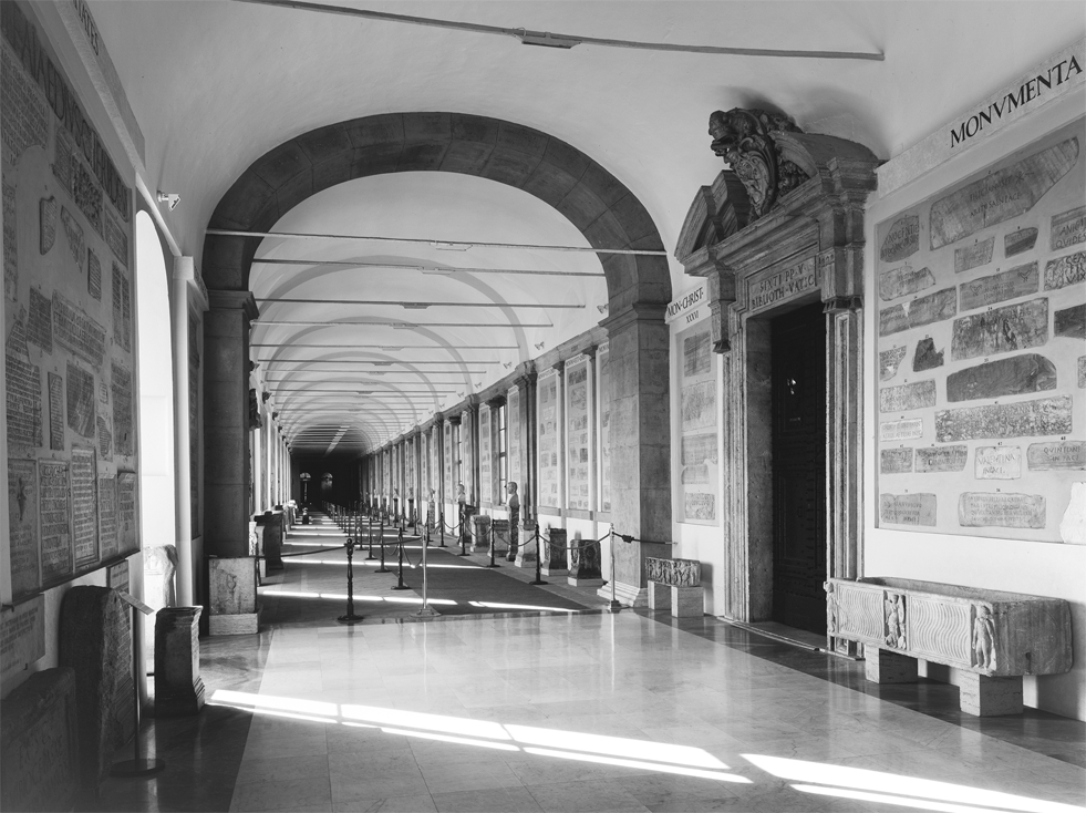 The Lapidary Gallery, home to the richest lapidary collection in the Vatican, occupies the southern part of the long corridor created to link the Vatican Palace with the Belvedere Palace, and was formerly called the Ambulacrum Iulianum, from the name of Pope Julius II (1503–1523), or the “Bramante corridor”, referring to the name of the architect who designed it. The primary nucleus of the collection, initiated organically by Clement XIV (1769–1774), founder of the Clementine Museum, had already been arranged in 1772 in the northern part of the Ambulacrum and was subsequently enriched by acquisitions by the pontiffs Pius VI and Pius VII and by donations from private collections (Zelada, Galletti, Rusconi, Marini). When Pius VII decided to create the present-day Chiaramonti Museum, the stones were detached from the walls between 1805 and 1808 and transferred to the present-day Gallery, which during the same years was also enhanced by the arrival of numerous newly-acquired epigraphs. The curator of the new display was Gaetano Marini, co-adjutor of the Prefect of the Vatican Archive from 1772, Prefect from 1798, and first Custodian of the Apostolic Library from 1800. Why was a librarian chosen as the the curator? The epigraphic collection was still within the competences of the Library: the lapidary inscriptions were assimilated within the collection of manuscripts and printed documents as a source of information. Indeed, the Gallery constituted a real “stone library”, vestibule to the library itself (the old entrance to which is located in the Gallery), containing more than 3400 “pages”, written on slabs, bases, memorials cippi, urns, altars and sarcophagi, dating from between the 1st century B.C. and the 6th century A.D. Distributed over 48 walls (some of which were arranged after Marini) according to content — religion, emperors, consuls and magistrates, army, professions and trades, family and society, Christianity, and the Ostia excavations — they constitute an important source of knowledge on many aspects of the antique and late-antique world: populations, nations, international relations, war, the army and naval forces, administrative, legal and economic structures, the names of people and biographical summaries (careers, professions), social classes, personal and collective religiosity and spirituality, honours bestowed upon the living and the commemoration of the deceased, private and public acts of munificence in social, religious and building fields, the worship of the dead and of the tomb, testaments, private and public forms of associational life, notices, indications, prohibitions, signs, inventories, and topographical data. Sarcophagi, altars and bases are also displayed on the floor.