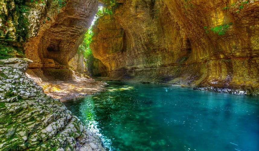 The canyon is a very picturesque natural corridor carved into limestone by the waters of the Abasha River. There is a whole cascade of magnificent waterfalls and shallows in the canyon.