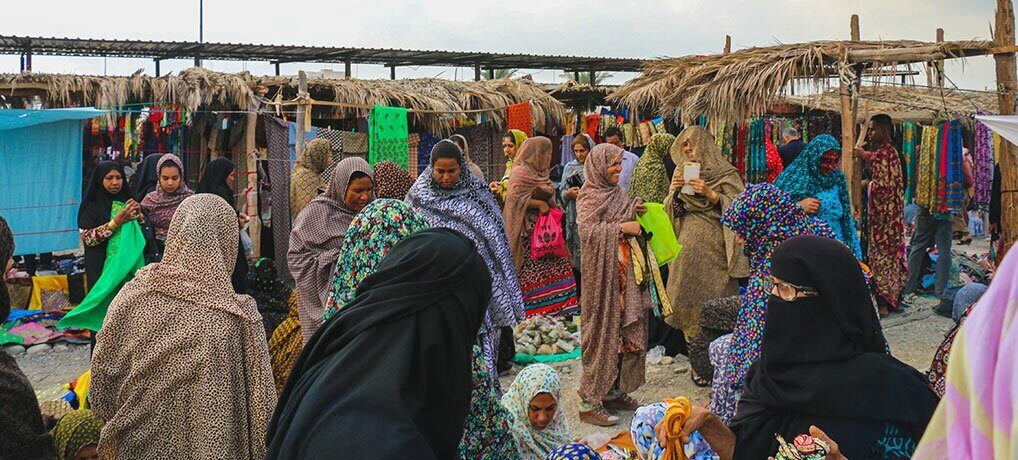 In Minabe, women sell absolutely everything themselves — fresh bread, fruits, jewelry, fabrics, bright trousers and even homemade canned fish. It is here that you can buy the famous mustache masks, which you will not find anywhere else in Iran.